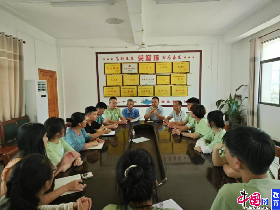 在对村庄有了初步了解后,实践队与龙口村村干部召开了会议。会上,村委书记廖万松对实践队的到来表示热烈欢迎,并详细介绍了村庄的基本情况,包括地理位置、人口结构、产业发展等。同时,着重强调了实践队在活动期间需要注意的事项,希望队员们能尽快融入乡村生活,与村民建立良好关系,确保实践活动顺利开展。此次会议让实践队明确了后续工作的方向,也为双方的合作奠定了坚实基础。